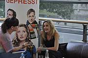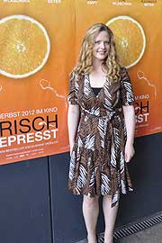 Starbesuch im CinemaxX am Dammtor: die Schauspieler Diana Amft, Tom Wlaschiha und Regisseurin Christine Hartmann stellten ein paar Tage vor dem Kinostart am 23.08.2012 im Hamburger CinemaxX Kino am Dammtor ihren Film „Frisch gepresst“ vor und wurden von zahlreichen Autogrammjägern empfangen. Mit „Frisch gepresst“ wurde der erste Roman von Erfolgsautorin Susanne Fröhlich verfilmt und bietet spritzig leichte Unterhaltung um eine junge Frau, die versucht ihr chaotisches Leben zu meistern und ganz nebenbei nicht weiss, wer von den zwei Männern, mit denen sie einen „One-Night-Stand“ hatte der Vater ihres Babys ist. Zwischen Schwangerschaft, Beziehungsstress und Insolvenz ihres geerbten Geschäfts, lernt sie vieles über sich und was im Leben wirklich zählt. Die Hauptrolle der Andrea wird von Schauspielerin Diana Amft (MädchenMädchen) gespielt. Die blonde Darstellerin findet sich selber ein klein wenig in der Rolle wieder – allerdings ohne die Schwangerschaft: „Andrea ist eine typische Frau in den Dreissigern. Sie steht für die heutige Generation Frauen, bei denen so viele Entscheidungen dieser Zeit anstehen: Zusammenziehen, Heiraten, Kinder bekommen, Karriere, all dies muss entschieden und bewältigt werden. Von daher konnte ich mich sehr gut damit identifizieren,“ erklärt die 35jährige. Ob sie selber für ein Kind so zurückstecken würde wie ihre Figur? „Ich denke schon. Manchmal hat man das Glück Karriere und Kind vereinbaren zu können. Wenn das Einkommen da ist, wenn die Eltern und Schwiegereltern einen Unterstützen, wenn Mann einem zur Seite steht, ist es natürlich leicht.“ Wenn es Unterstützung nicht hat, ist es sicherlich viel schwieriger. Wenn ein Kinderwunsch vorhanden ist, dann verschieben sich auch die Prioritäten. Ich persönlich finde, dass ein Baby so etwas Besonderes ist, dass ich es niemals mit einem Filmprojekt gleichsetzen würde. Diana Amft selber arbeitet fleissig weiter an ihrer Karriere. Demnächst ist sie auf RTL in der Serie „Die neuen Abenteuer der alten Christine“ zu sehen. Der Pilotfilm wurde bereits gedreht und erzählt von einer geschiedenen Mittdreissigerin, deren Nachfolgerin beim Ex-Mann zufällig auch Christine heißt. Allerdings soll die deutsche Serie, im Gegensatz zum amerikanischen Original keine Comedy werden. Besonders stolz auf „ihr Baby“ ist Regisseurin Christine Hartmann (Das dunkle Nest, Tatort). Ihr eigener Sohn spielt in dem Film „Frisch gepresst“ mit. Anfänglich hatte sie allerdings Probleme damit: „Eigentlich wollte ich meinen Sohn nicht unbedingt vor die Kamera bringen. Die Kinder-Casterin hat dann mit mir gesprochen, dass es sehr schwer ist vierjährige Kinder zu casten und sie hat mich gefragt, ob ich nicht meinen eigenen Sohn für die Rolle haben möchte, weil er mich kennt, die Arbeit am Set kennt und es dann für alle Beteiligten leichter ist. Es war ein Riesenspass für meinen Sohn, weil er immer bei der Mama sein durfte. Er hat sich toll geschlagen“, stolz schwingt in der Stimme der Regisseurin. Wie Christine Hartmann dazu kam, nach Krimis wie „Tatort“ oder das „Das dunkle Nest“ eine Komödie zu drehen? „Das Drehbuch wurde mit von der Produzentin Regina Ziegler in Absprache mit Disney angeboten und ich habe es gelesen und fühlte mich an eigene Momente im Leben erinnert. Auch wenn mein Leben etwas anders verlaufen ist, als das der Andrea. Aber die Gefühle in der Schwangerschaft und das Hormonchaos kennt jede Frau, die ein Kind zur Welt gebracht hat“, gerne berichtet sie davon, dass sie eigene Erfahrungen in die Dreharbeiten miteinfließen lassen konnte. Schließlich ist die Filmemacherin selber Mutter und muss den täglichen Spagat zwischen Arbeit und Kind bewältigen: „Leicht ist es nicht. Ich habe einen 20-Stunden Tag wenn ich einen Film drehe. Aber ich habe das Glück, dass ich sehr von der Produktion unterstützt werde“, die 42jährige weiss wie schwer es Frauen heute haben. „Als ich meinen ersten Film gedreht habe, wurde mir der Kleine sogar zum Stillen ans Set gebracht. Das Schöne ist auch, dass es zwar arbeitsreiche Zeiten gibt, dass ich aber auch viel Zeit habe Mama sein zu können, wenn ich Drehpause habe.“ Vielleicht geht mit diesem Film auch ein Traum in Erfüllung und er führt die Regisseurin direkt nach Los Angeles, dem Traum aller Filmschaffenden, schließlich hat Disney den Film mitproduziert und Christine Hartmann hat schon beachtliche Erfolge mit ihren Filmen in Deutschland erzielt: „Ich würde sicherlich gerne Filme wie z. B. „Prometheus“ machen oder eine Neuauflage von „Charlie´s Angles“ so einen richtigen Actionfilm, dann denke ich mir aber auch wieder wie schön es ist, kleine, ruhige Filme zu machen wie z. B. „Beste Freunde“. Es kommt immer darauf an, welche Gelegenheit sich bietet. Welcher Regisseur träumt nicht davon einen großen Hollywoodfilm zu drehen...“, bei diesen Worten leuchten die Augen der Regisseurin. Auch Tom Wlaschiha (Games of Thrones, Rettungsflieger) hatte Spass an den Dreharbeiten. Sonst ist der vielbeschäftigte Schauspieler eher in internationalen Produktionen, wie „Anonymus“ oder „Games of Thrones“ zu sehen, doch die Gelegenheit an der Seite von Kollegin Diana Amft zu spielen, wollte er sich nicht entgehen lassen. Bei der Frage, ob es schwer für ihn war einen Softie zu spielen grinst der Mime breit: „Ist das ein Softie? Echt? Unter dem Gesichtspunkt habe ich das noch gar nicht gesehen. Es ist der Spass verschiedene Charaktere zu spielen. Ich möchte nicht in eine Ecke gedrängt werden oder in eine bestimmte Schublade. Es ist das schöne, dass ich von Drama über Krimi bis hin zur Komödie alles spielen kann und darf“, auch wenn er momentan in London lebt, fühlt sich Tom Wlaschiha dem deutschen Film verbunden und ist sehr bodenständig geblieben. Allerdings kann er sich nicht vorstellen ähnlich wie seine Figur ein ganz normales, langweiliges Vorstadtleben zu führen: „ Ich würde mich n
